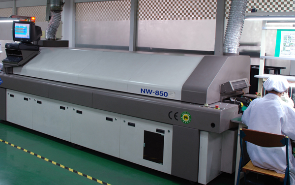 無鉛八溫區(qū)熱風(fēng)回流焊設(shè)備,用于表面貼裝基板的整體焊接,整機(jī)采用計算機(jī)控制,具有Win2000操作界面和豐富的軟件功能、具有自動傳送的隧道式結(jié)構(gòu),由多預(yù)熱區(qū)、焊接區(qū)、風(fēng)冷區(qū)組成,全熱風(fēng)加熱方式,上、下溫區(qū)獨立熱源,各加熱區(qū)單獨PID控溫,具有通訊控制的無級調(diào)速功能。